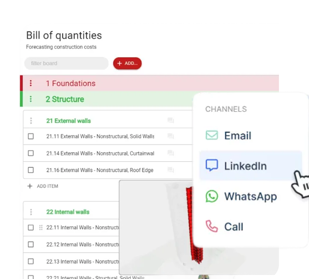 Track progress and quantities on the model, back every claim with proof, and keep everyone aligned.