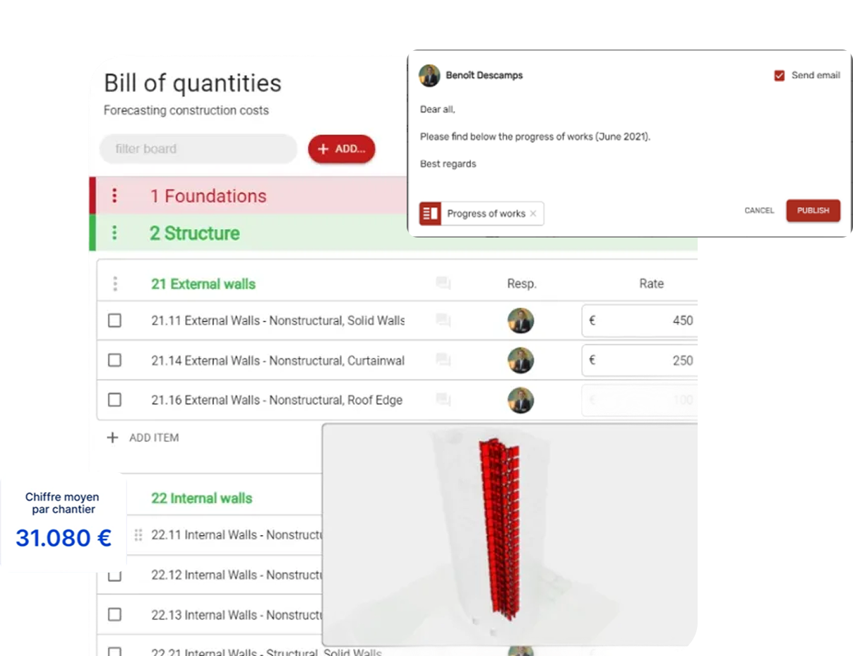 Kabandy makes progress and quantities visible and defendable on the model. Everyone works from the same facts, so meetings are shorter, disputes drop, and reporting becomes smoother.